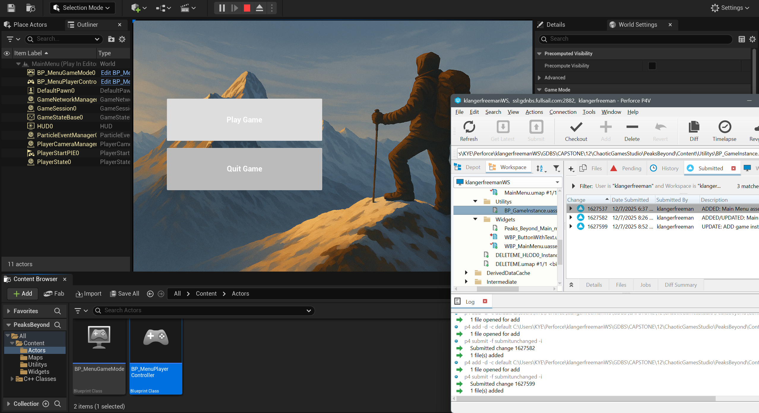 To work around the reduced time, I focused on completing as much as I could get done in the time that the assignment was due. I made sure the Main Menu widget loaded correctly into the viewport, set the proper game mode for the menu map, and bound each button to its correct Unreal function. This does ensure that despite the shorter production window, the team still has a working entry point into the game.