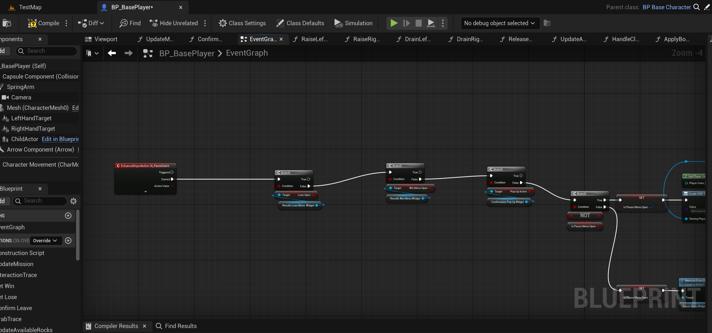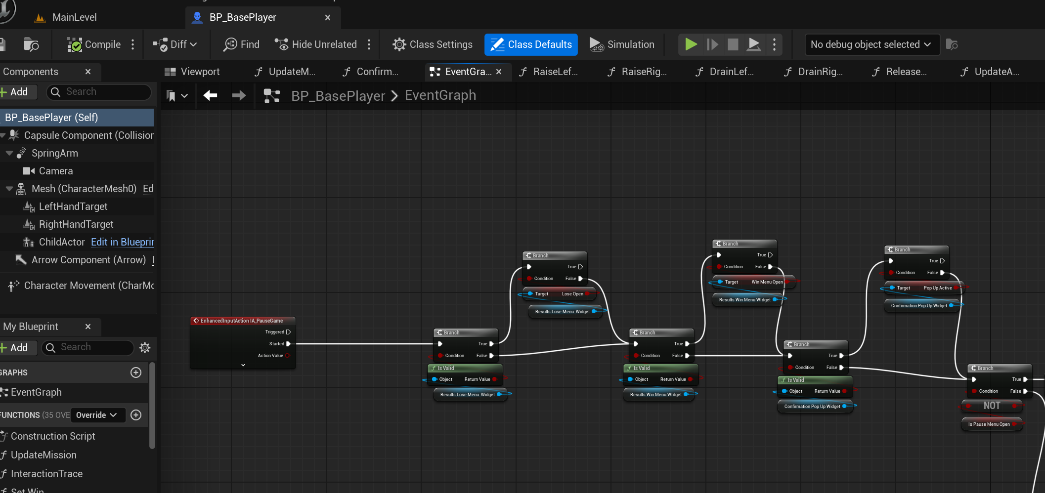When going through some testing of the new confirmation, and win lose menu's I kept running into these runtime errors when trying to press pause inside of the confirm leave / win / or lose menu's. This bug began once I had put in place the three branches for checking if any other menus were open before allowing the pause to be activated or deactivated. Previous to this system a soft lock occurred when pausing the game to where the user would get stuck with whatever menu they were in before pause being present after pause but no way to close the menu. With that lock present this new fix was a must to get running or else it would extremely effect the user experience by making the game basically unplayable.