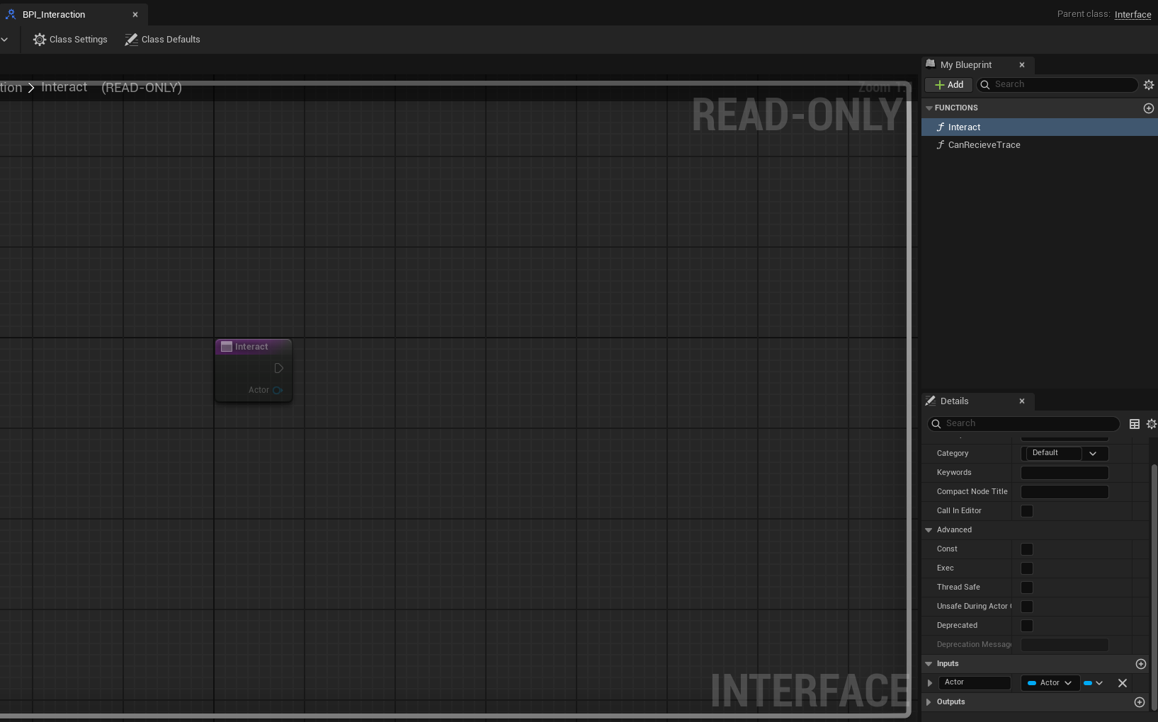 This limitation became a real blocker once items needed to know exactly who interacted with them so they could be added to the correct inventory. Without a reliable actor reference flowing through the interface, pickups could not be implemented cleanly. Addressing this problem was important not just for the demo, but for the long-term structure of our interaction and inventory systems.