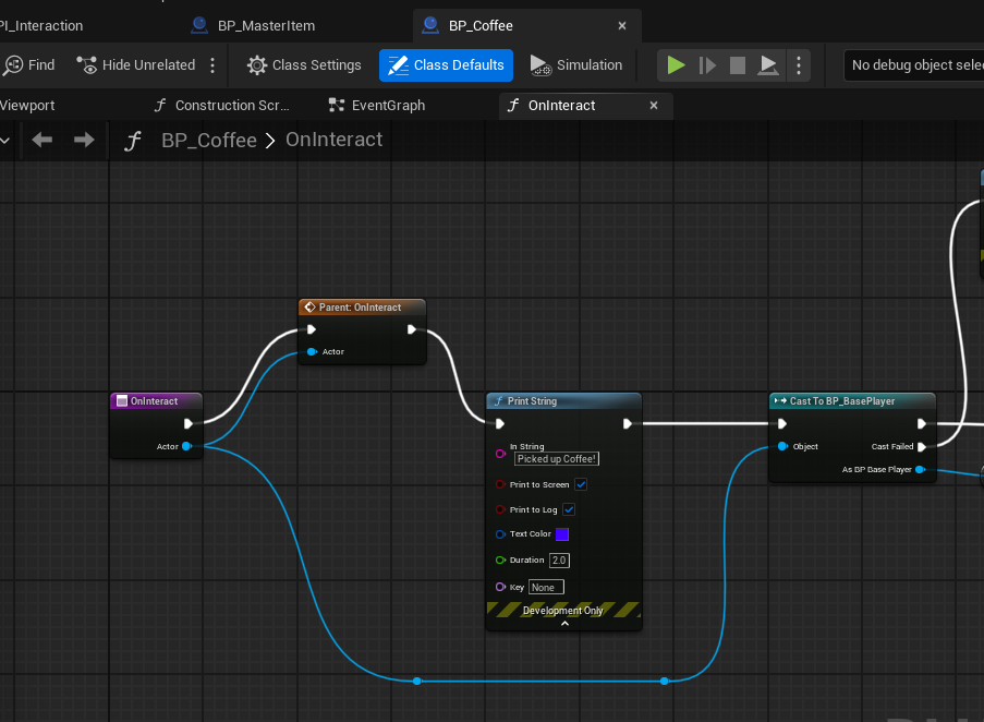 The main problem was that the Interact Interface did not pass in an actor reference. When I initially implemented pickup behavior inside MasterItem, I worked around this by grabbing the player pawn directly. That logic simply returned the first BasePlayer found in the scene. While this allowed early testing to move forward, it was not technically correct and introduced assumptions that would not hold up as the project grew.